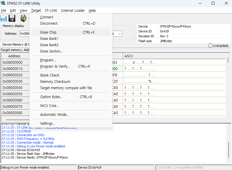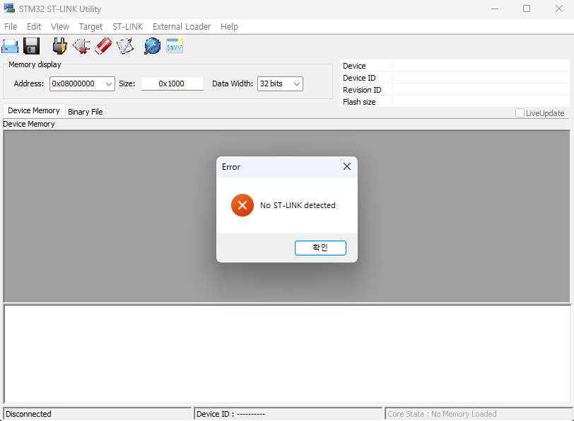 CubeIDE에서 Debug Configuration도 해보고 ST-LINK Utility도 사용해 봤지만