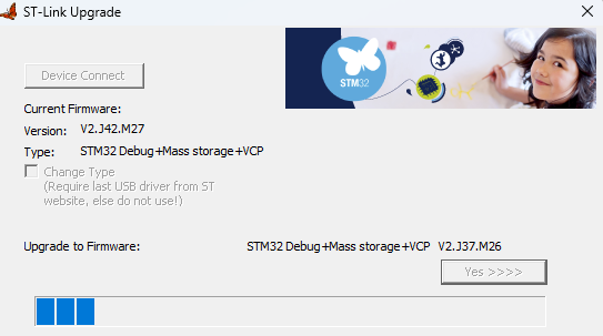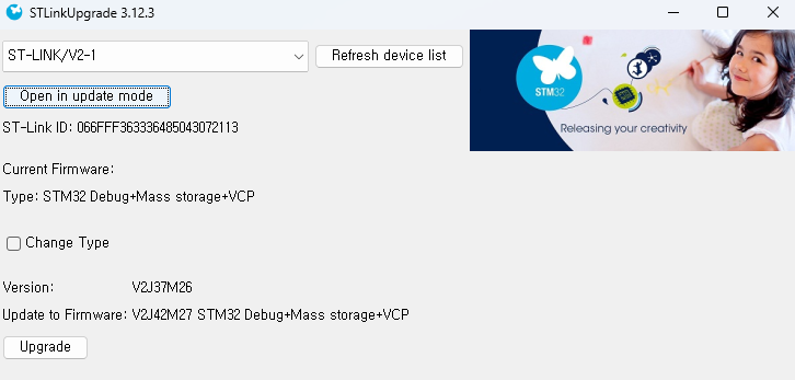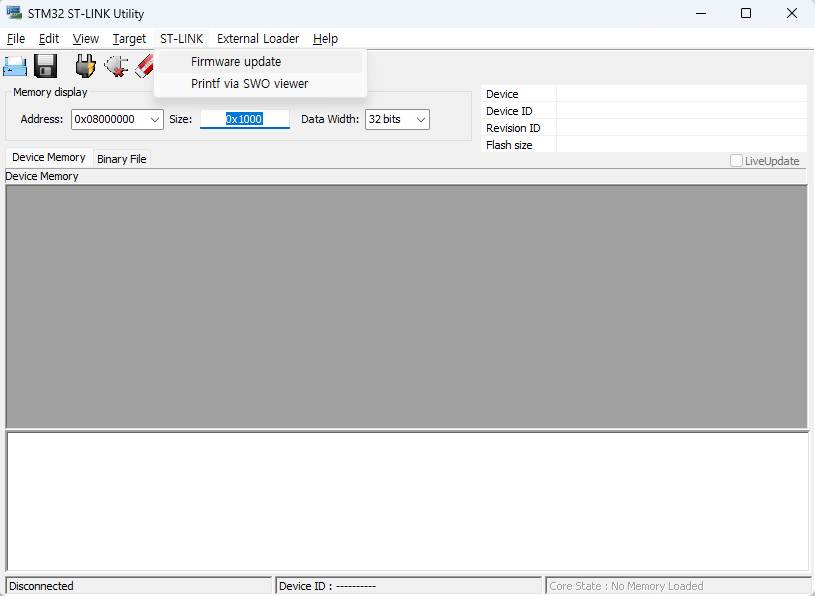 정상적으로 연결되어 있다면 ST-LINK S/N이 뜬다
