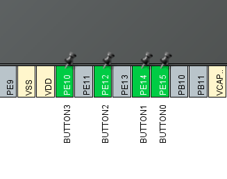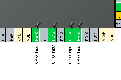 먼저 버튼을 사용하기 위해 ioc에서 버튼에 사용할 핀을 GPIO_Input으로 활성화해주고 라벨링으로 이름을 바꿔준다