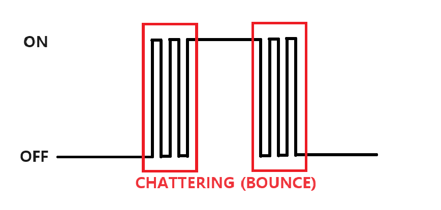 채터링이란 버튼을 눌렀을 때 버튼의 물리적 특성으로 인하여 일시적으로 값이 불안정한 것을 의미한다