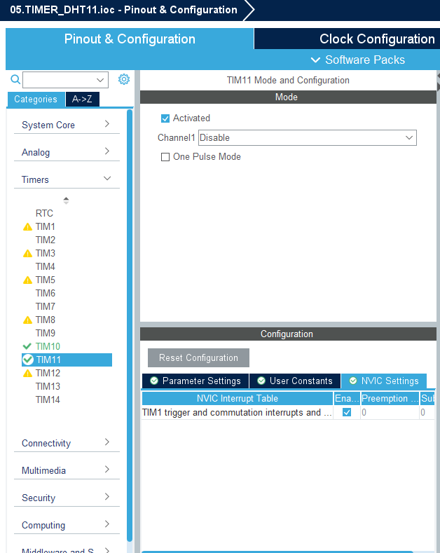 그전에 DHT11 소스파일에서 사용할 1us 타이머를 생성해야한다
