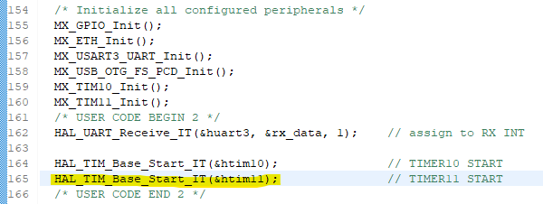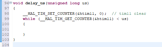 main.c에 타이머 시작 함수와 생성된 htim11 구조체를 가지고 위와같이 1us 타이머를 생성한다