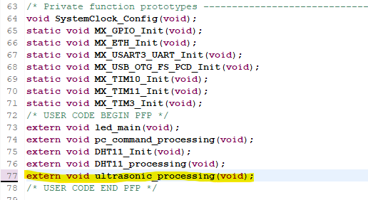 main.c에 ultrasonic_processing() 함수를 extern 해주고