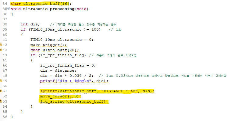ultrasonic.c도 위와 같이 작성하면 얘는 두번째 줄에 버퍼의 내용을 출력한다