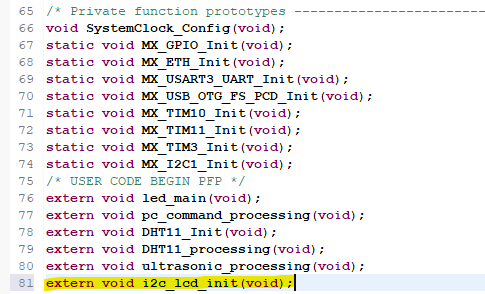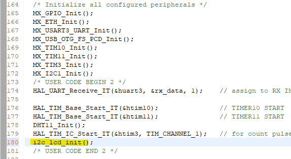 먼저 i2c_lcd.c의 i2c_lcd_init()을 main.c에 extern하고 main()에서 호출한다