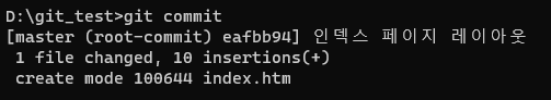 명령어로 커밋을 진행하면 처음의 방법처럼 에디터를 사용해서 커밋 메시지를 작성하지 않아도 된다