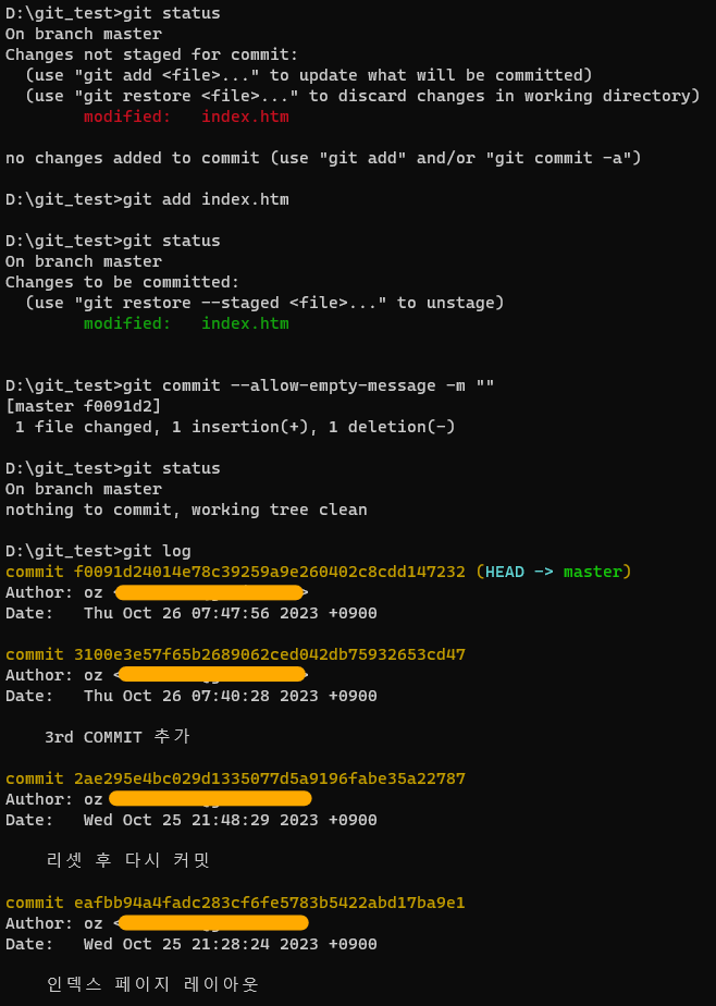 메시지가 없는 커밋도 가능한데, 이렇게 메시지가 없는 커밋을 빈 커밋이라고 한다