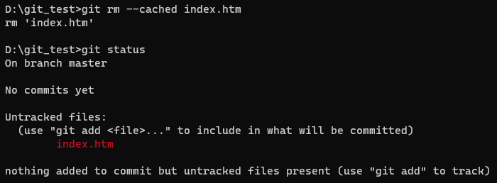 그런다음 상태를 확인하면 아까 처음에 Untracked 상태로 돌아간 것을 확인할 수 있다