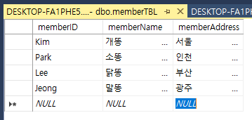 아까 입력한 행들이 잘 들어가 있는 것을 확인할 수 있다