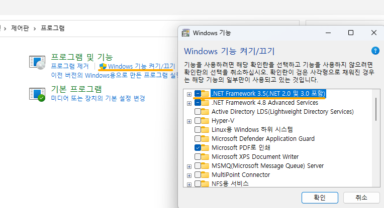 SQL Server 설치 전에 제어판에서 위와 같이 설정해주자