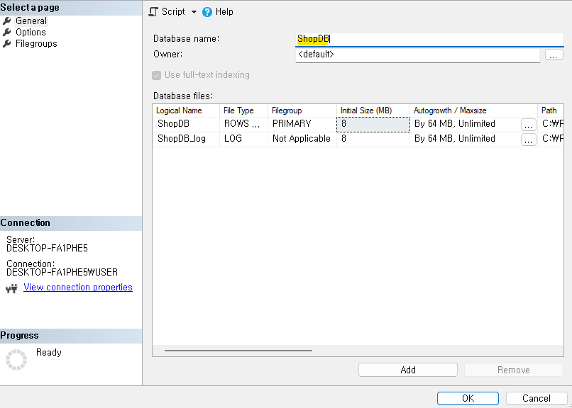 데이터베이스 이름을 입력하면 알아서 아래 파일 이름도 바뀐다