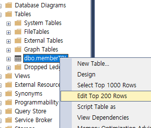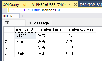 SSMS에서 쿼리는 뉴 쿼리 > 쿼리 입력 > 실행 으로 사용하고