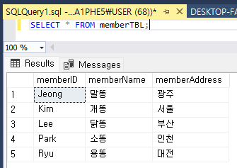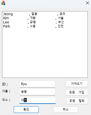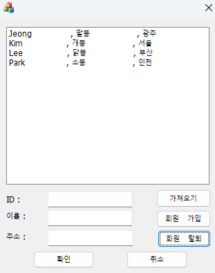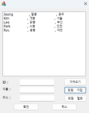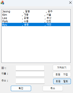실행해서 삭제하고 싶은 데이터를 클릭한 뒤 회원 탈퇴를 누르면