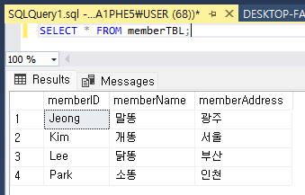 str_query.Format(L"INSERT INTO memberTBL VALUES ('%s', '%s', '%s')", str_id, str_name, str_addr);