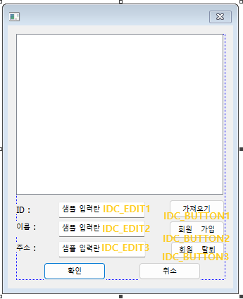 BUTTON2는 회원 가입, 즉 데이터 삽입 버튼이기 때문에 다이얼로그 소스 파일의 2번 버튼 클릭 함수에 위와 같이 코드를 작성한다