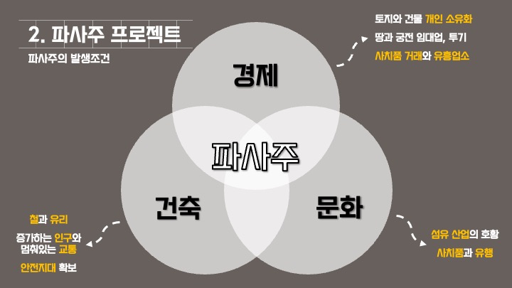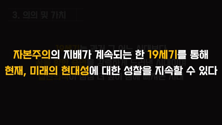 지금도 그러긴 한데 PPT 전체를 검정색으로 반투명하게 한 다음, 글씨만 나타내어 강조하는 기법을 많이 쓰는 것 같다