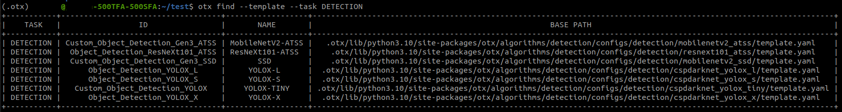 otx build Custom_Object_Detection_Gen3_ATSS --train-data-roots ./workspace/export-coco/ --val-data-roots ./workspace/export-coco/ --test-data-roots ./workspace/export-coco/ --workspace otx_detection