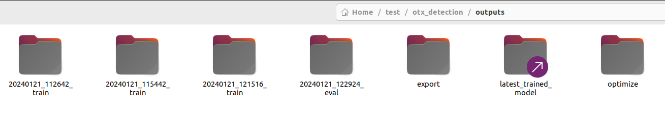 otx_detection이라는 폴더를 생성하고 training, validation, test 데이터셋을 사용해 MobileNetV2-ATSS 모델로 전이학습을 진행한다