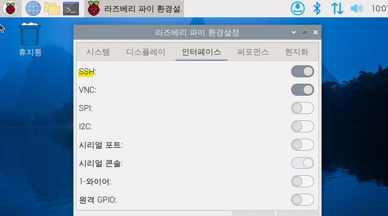 라즈베리 파이 환경설정에서 SSH를 활성화
