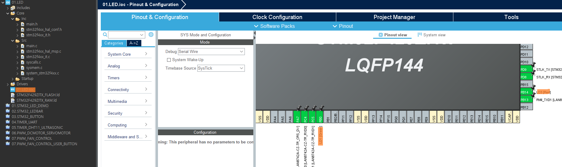 rtos를 활성화해서 쓰레드와 뮤텍스를 사용해보려고 한다 쓰레드 pin configuration -> Middleware -> FREERTOS에서 CMSIS_V2로 rtos를 활성화 하자 System Core -> SYS에 들어가보면 기본으로 사용하는 타이머가 SysTick인 것을 확인할 수 있다 해당 타이머는 우선 순위가 낮기 때문에 다른 타이머를 사용해야 한다 비활성화 된 타이머를 선택하자 다시 FREERTOS로 돌아와서 Newlib setting을 Enable 해주고 Tasks and Queues에서 쓰레드 함수 (= Tasks)를 추가해주자 저장을 하면 코드가 생성되는데, 이런 폴더와 코드들이 생성된다 main.c의 최하단을 보면 생성한 쓰레드 함수가 있는 것을 확인할 수 있다 쓰레드 함수를 생성..